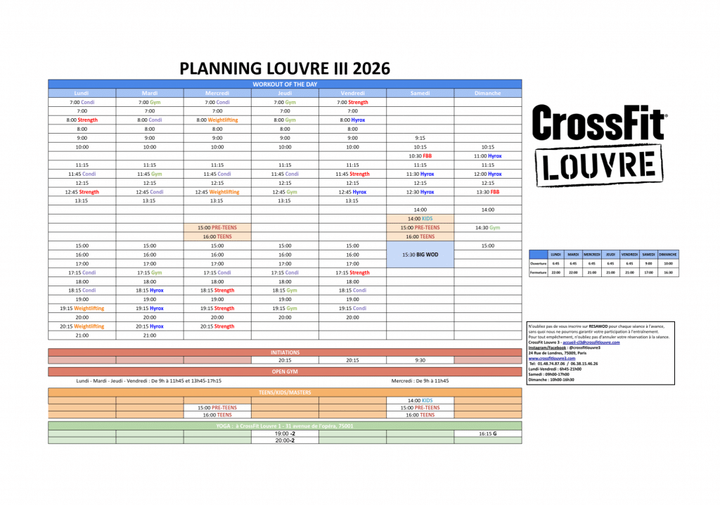 Bienvenue sur la page de planning des cours de CrossFit Louvre 3.